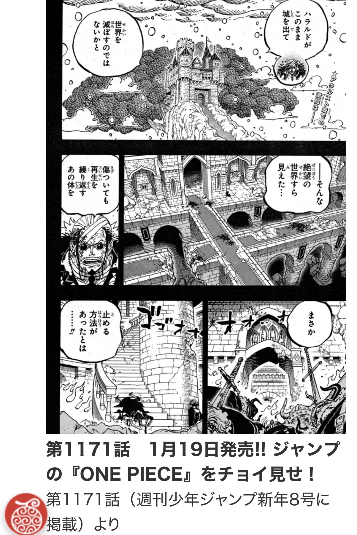 ONE PIECE.comの「ジャンプの『ONE PIECE』をチョイ見せ!第1171話」は、2026年1月19日発売の週刊少年ジャンプ新年8号掲載分の先出しです。